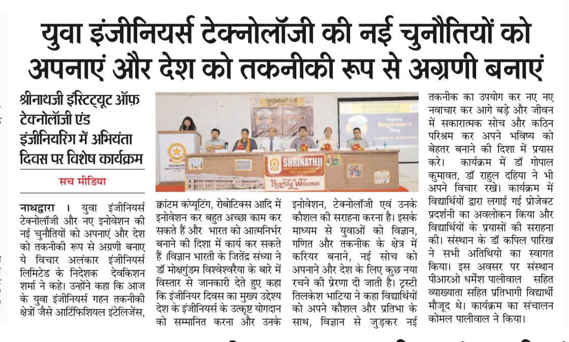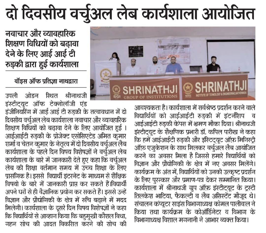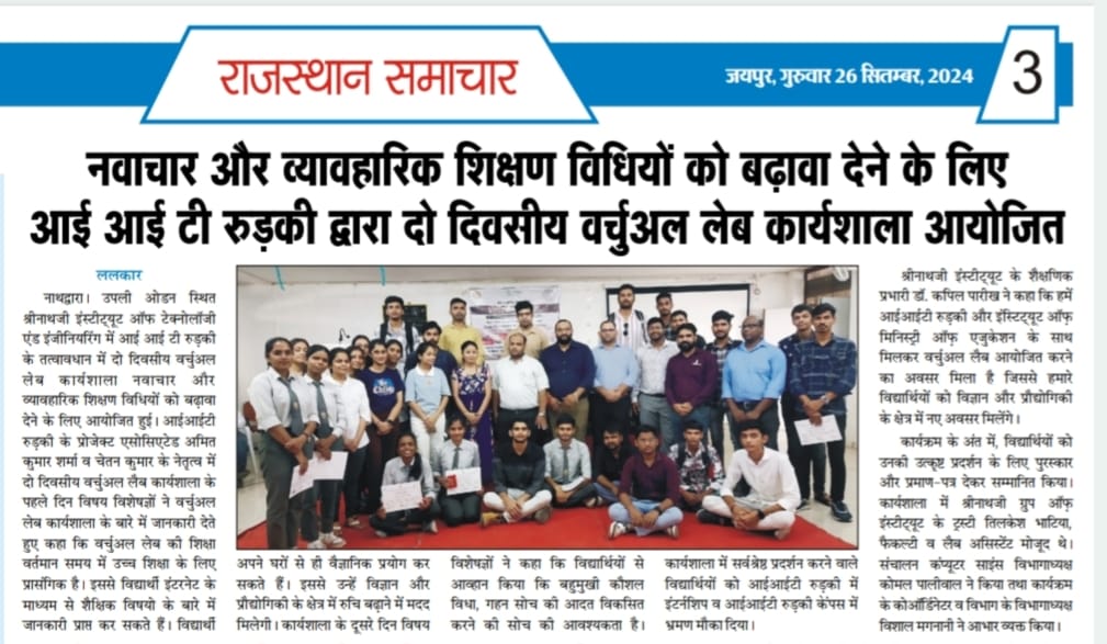 Media Coverage S.I.T.E Related News & Articels site media Engineers Day Introduction Programme Secure Meter Visit Sports Inter College UILTRA Tech Virtual Lab IIT Roorkee